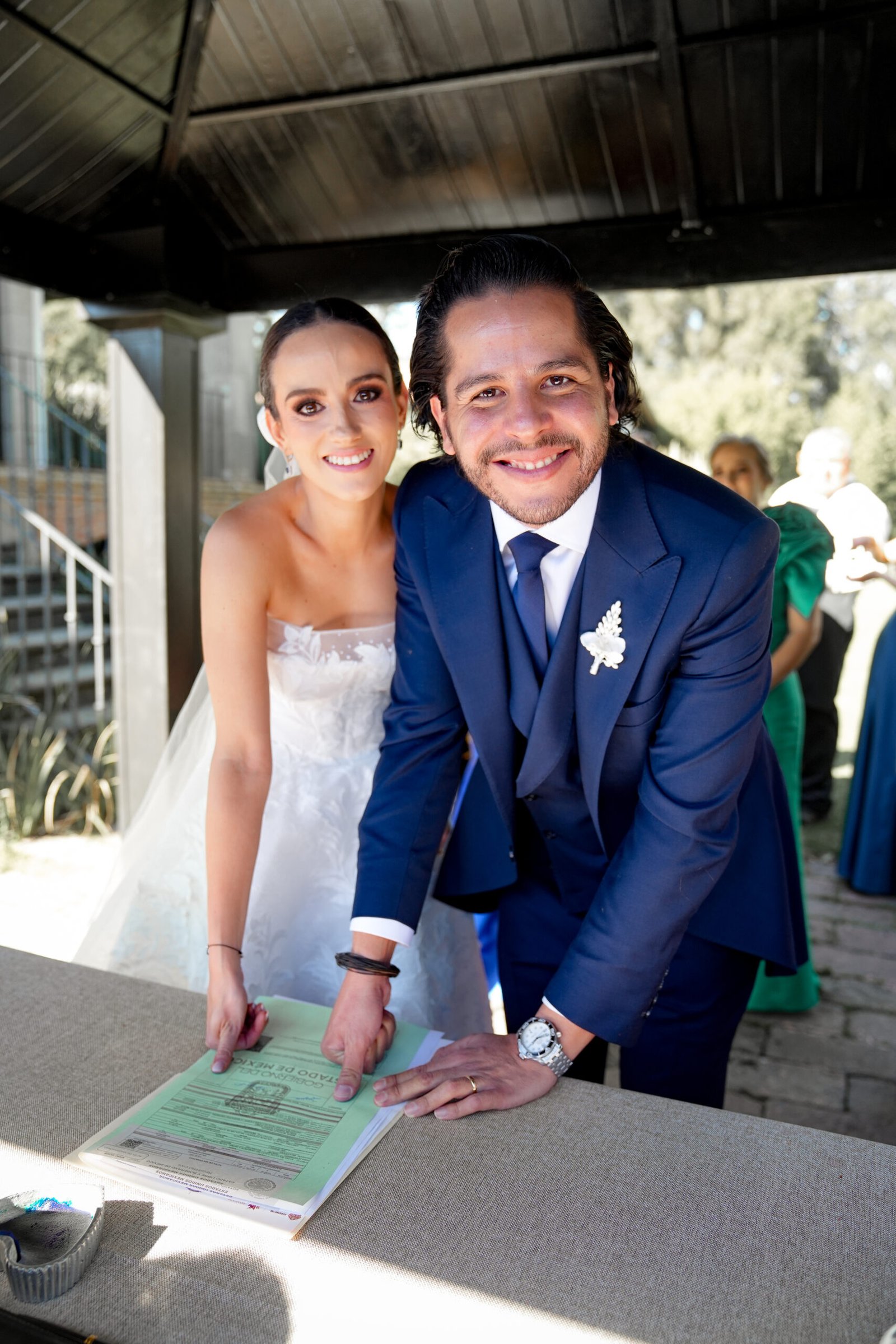 Mediante firma de contrato y pago del anticipo. Con ello, la fecha de su boda queda apartada.